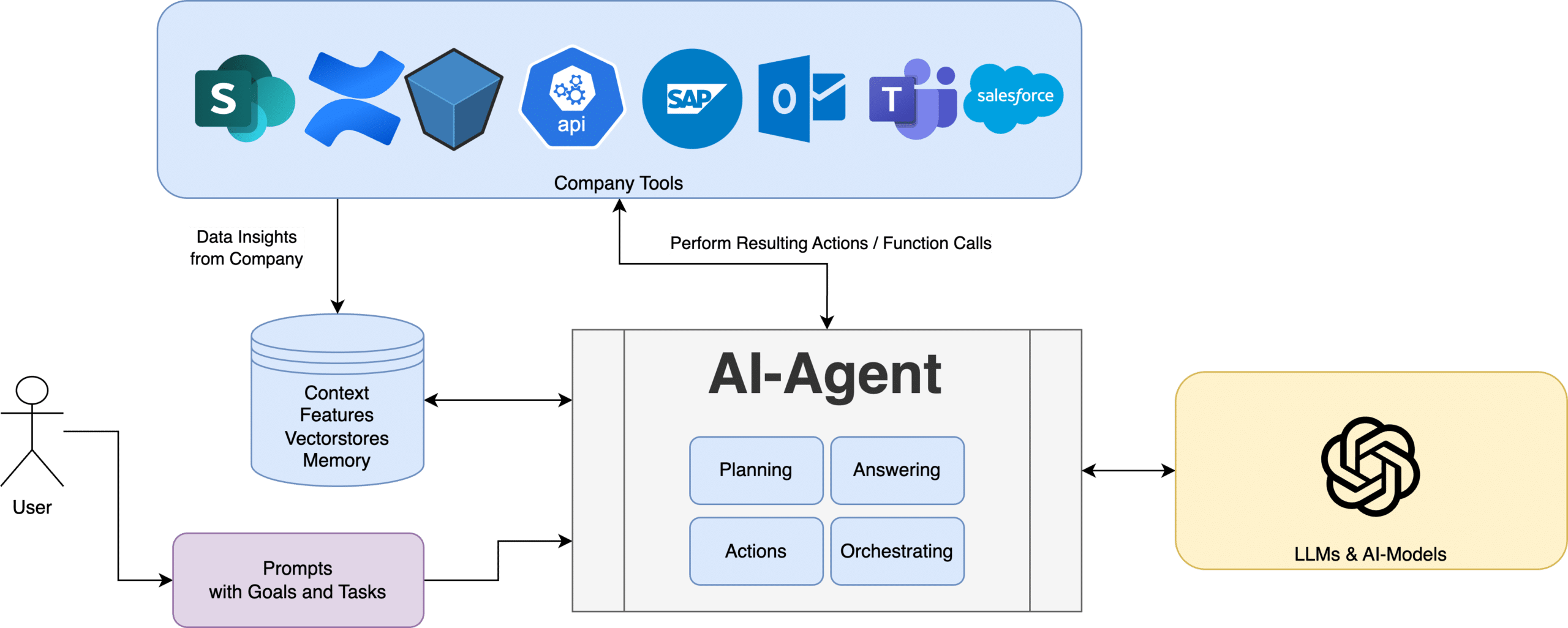 Die Integration von KI-Agenten ist der nächste logische Schritt nach der Einführung von Sprachmodellen wie (Chat)GPT – CompanyGPT – im Unternehmenskontext.
